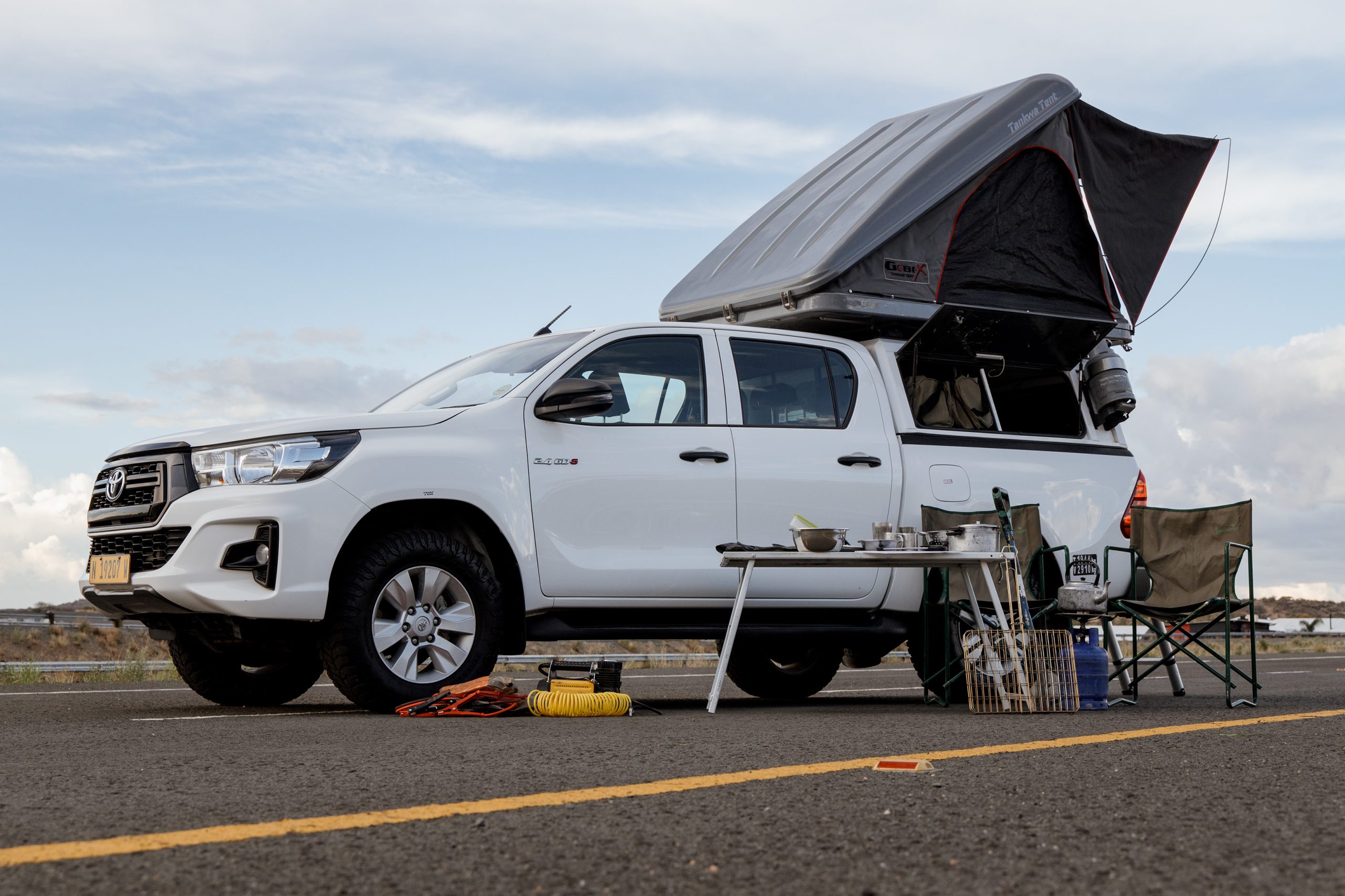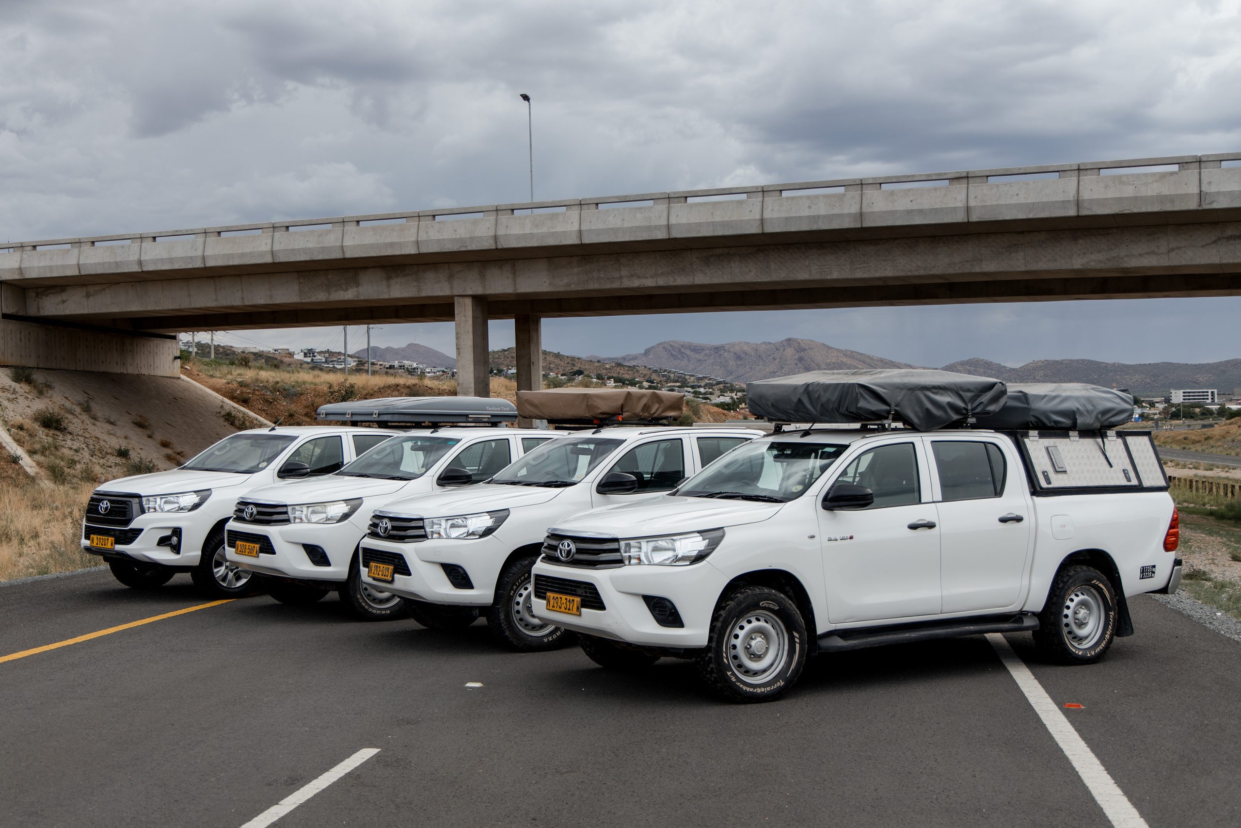 To ensure a seamless start to your adventure, we provide complimentary transfers to and from Hosea Kutako International Airport to our office in Windhoek and 24-hour emergency backup, alongside unlimited kilometers and optional premium tyre and glass protection for just N$250 per day. View more information on each vehicle below.